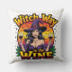 A pretty witch holding two glasses of wine and typography with Witch Way to the Wine.