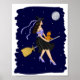 Witch with an Orange Cat on a Broomstick Poster