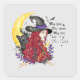 Witch with Black Cat and Crescent Moon Square Sticker