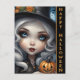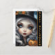 Send spooky greetings with our Creepy Cute Witch Doll with Carved Pumpkin Happy Halloween Postcard. This postcard showcases a close-up illustration of a witch doll with captivating blue eyes, cradling a intricately carved pumpkin. The words "Happy Halloween" adorn the side, setting the perfect tone for a bewitching celebration. Share the spirit of Halloween with this charming and slightly eerie postcard.