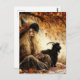 Witch With Coffee and Her Pet Goat in Autumn Postcard