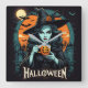 Witch with pumpkin mug on Halloween Square Wall Clock