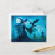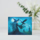 Witch with raven in moonlit graveyard holiday postcard