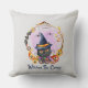 This fun and festive Halloween throw pillow features a sassy black cat in a witch hat, framed by glowing jack-o’-lanterns and an intricate spider web, with the cheeky phrase “Witches Be Crazy.” Combining spooky charm with a touch of humour, this design is perfect for those who love witchy aesthetics, Halloween humour, and a bold feline attitude.