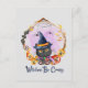 This fun and festive Halloween postcard features a sassy black cat in a witch hat, framed by glowing jack-o’-lanterns and an intricate spider web, with the cheeky phrase “Witches Be Crazy.” Combining spooky charm with a touch of humour, this design is perfect for those who love witchy aesthetics, Halloween humour, and a bold feline attitude.