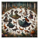 The earthy colour palette evokes the natural beauty of the forest, and the overall design captures the essence of witchcraft and its deep connection to nature. Whether you're a fan of magical themes, nature symbolism, or simply appreciate the enchanting world of witchcraft, this illustration is a captivating representation of a woodland party where the mystical and the mundane converge.
