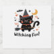 Witching Fun Black Cat with Broom – Cute Halloween Sparkling Wine Label