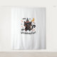 Witching Fun Black Cat with Broom – Cute Halloween Tapestry