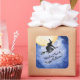 Fun watercolor witch flying on her broom is all ready to "witch" you a happy Halloween. Watercolor blue sky, full moon and flying witch silhouette. Great sticker for your envelopes, invites and cards.