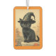 Cute, vintage picture of a cat wearing a witch's hat, is featured on both sides of this car air freshener. With the Onyx Frost scent, this makes this car air freshener a great little gift or use yourself!