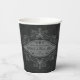 A spooky Halloween party essential. These paper cups designed by Destei feature a dark worn textured background with ornate flourishes, spider webs in the corners, bat silhouettes and a skull above the central label. The top text area can be personalised with your name or event title, reading something like "Emily’s Halloween Party" while the middle highlights "Witch's Hex Mix" in larger font and the bottom adds the playful warning "Sip If You Dare". The motifs and text areas are fully personalizable so you can move, resize, recolor or remove the skull, bats, webs and label to make the design truly your own while the dark background remains fixed. Perfect for serving eerie drinks with a macabre touch.
