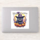 This unique Happy Halloween vinyl sticker features an illustration of an adorable witchy kitty cat. Please feel free to adjust all the available options as you wish.