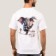 The front of the t-shirt showcases an enchanting illustration of an elephant and a mouse navigating a tightrope high above the clouds. The elephant, holding a delicate lace parasol in one hand and a tiny cup of coffee in the other, exudes an air of calm and confidence. Its large, expressive eyes and slightly blushed cheeks add a touch of endearing innocence to its demeanour. Standing beside the elephant on the tightrope, a small, animated mouse appears to be offering encouragement. Its tiny paws are raised in excitement, and its wide eyes convey a mix of astonishment and cheerfulness. The mouse's playful nature contrasts beautifully with the elephant's serene composure. Below the illustration, the motivational phrase "With Coffee, Anything is Possible" is elegantly written in a combination of bold and cursive fonts. The word "Coffee" is highlighted in a rich, dark brown, emphasising the beverage's importance in this delightful narrative.
