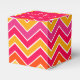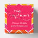 Give a taster professionally to customers with this bright chevron style pink, red, orange, yellow and white with compliments gift or treat gift box. Ideal for corporate gifts for clients or employees. Could also be used for promotions or loyal or potential new customers filled with your food samples. Customise with your companies contact details. Currently reads with compliments pâtisserie delights followed by phone number or your website. Designed by Sarah Trett.