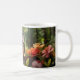The centerpiece of this mug's design is a realistic portrayal of a French Bulldog puppy, adding a touch of whimsy and warmth to the scene. The puppy is depicted in a playful and endearing pose, its expressive eyes filled with curiosity as it navigates through the vibrant jungle foliage. Its short, velvety fur is meticulously detailed, capturing the essence of this beloved breed.