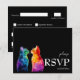 The front of the card features striking watercolor artwork of two rainbow-hued cats facing each other, their gentle gaze capturing the essence of devotion and unity. Set against a sleek black background, the vibrant colours of the cats echo the LGBTQ+ pride flag, beautifully symbolising love in all its forms. The word RSVP is prominently displayed in elegant type, with the response date clearly noted just below, ensuring clarity and ease for your guests.