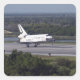 With drag chute unfurled, space shuttle Discovery lands on Runway 33 at the Shuttle Landing Facility at Kennedy Space Centre in Florida featured with Cape Canaveral.