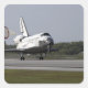 With drag chute unfurled, space shuttle Discovery lands on Runway 33 at the Shuttle Landing Facility at Kennedy Space Centre in Florida featured with Cape Canaveral.