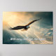 With every challenge, rise higher: Inspirational poster of an eagle soaring about the mountains.