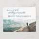 Inspirational scripture Christian graduation postcard depicts a person walking on a nature path overlooking a beautiful mountain valley. It features Bible Verse Matthew 19:26, "With God all things are possible." The back greeting can be personalised.