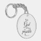 This Christian keychain has a small black cross and the bible verse (Matthew 19:26): With God all things are possible.