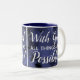 Believe in the impossible and get inspired by this "With God All Things ARe Possible" mug in navy blue with watercolor and typography.