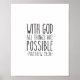 With God all things are possible, Matthew 19:26. Bible verse wall art, Christian Gift.