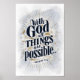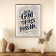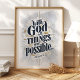 Inspire faith and hope with this beautiful typographic art print featuring the powerful verse from Matthew 19:26. The elegant script and delicate floral accents create a serene and uplifting design, perfect for adding a touch of spiritual inspiration to your home or office decor.