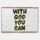 This throw blanket design has the words "With God You Can" in a bubble style print plus black letters and yellow shadow outline with a typograph style in this faith based theme. This Blanket is made with from 75% cotton and 25% polyester with a very soft feel hand washing recommend.