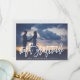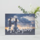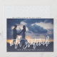 A modern wedding thank you card designed to accommodate your favourite full-bleed horizontal or landscape orientated wedding photo. "With gratitude" appears at the bottom as a white text overlay in handwritten style brush lettering, with your names and wedding date beneath. Add an optional message to the subtly patterned back using the field provided, or delete the sample text to add your own handwritten message of thanks.