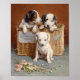 Carl Reichert’s With Hearty Good Wishes is a delightful painting featuring adorable puppies nestled together in a woven basket. Their curious expressions and soft fur are rendered with exquisite detail, exuding warmth and affection. The cosy composition, paired with the charming title, conveys a sense of joy and goodwill, making it a timeless celebration of friendship and comfort.