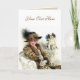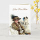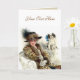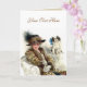Delightful vintage scene with a fashionable lady in a large elegant hat holding her little dog. Customise text on card front and inside.