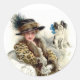 Delightful vintage scene with a fashionable lady in an elegant hat and fur coat. She is sitting with her little dog.