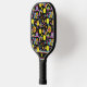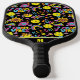 Black , Pickleball Paddle with Groovy, retro 90s style pickleball pattern with yellow pickleballs and black background. Great gift for dad