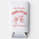 Cheers to the bride! Custom destination “With Love From” can cooler with clinking martini glasses: perfect bachelorette party favour and keepsake for the whole crew.