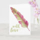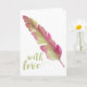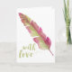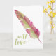 NewParkLane - Greeting Card: Elegant boho design with a green and pink feather in watercolor, with quote: 'with love' in green, elegant, handwritten typography.