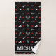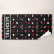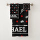 Classic colours: black, white and red tennis pattern with tennis rackets, tennis balls and a cap on black background. Customisable name. .