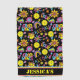 Black , Golf Towel with Groovy, retro 90s style pickleball pattern with yellow pickleballs and black background. Great gift for dad