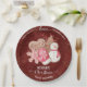 Delight your friends and family with this custom festive Christmas paper plate ideal for all those delicious holiday baked goods gifts. Design with message "With all our Love", "Wishing you a Merry Christmas" in beautiful hand written calligraphy and block typography. Text section for your name(s) or extra message. Hand painted watercolor gingerbread holiday cookies over a festive red and faux gold glitter background. Coordinating napkins, gift tags, aprons and even Christmas cookie swap and cookie decorating party invitations available.