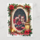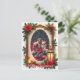 A festive postcard framed in golden holiday charm—poinsettias, holly, berries, and glowing candles surround a customizable oval photo. Snowflakes fall over cozy smiles, while “Merry Christmas” script adds warmth. Personalize front and back with heartfelt holiday messages.