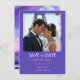 Part of the Amour Éternel à la Parisienne wedding collection, this double-sided Save the Date card captures the essence of timeless romance. The front features a customizable photo of the couple, framed in soft lavender tones with elegant typography—perfect for showcasing your love story. On the reverse, a dreamy illustrated Parisian night unfolds: the Eiffel Tower rises beneath a glowing moon, surrounded by watercolor washes of violet, blush, and twilight blue. Subtle stars and graceful script add a touch of whimsy and sophistication. All text is fully customizable, making this card a poetic prelude to your celebration in the City of Lights.