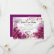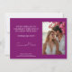 Flipping to the back, a soothing purple background provides an elegant contrast. On the right side, a cherished photo of the couple takes centre stage, capturing a moment of joy and connection. On the left, a spacious area awaits customisation, allowing the couple to share a personal message or details. An additional line is dedicated to the wedding website address, providing a modern touch for guests to access more information or can be omitted for simplicity. This horizontal design ensures a seamless and visually striking Save the Date card within the "Fuchsia Enchantment: Watercolor Wedding Suite," inviting loved ones to mark their calendars for a celebration filled with botanical beauty and love.