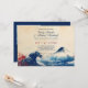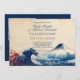 Introducing the horizontal "Japonesque Harmony with Fuji" wedding invitation. The front side captures the majestic beauty of Mount Fuji in serene blue and white hues, surrounded by gentle waves symbolising peace and natural splendour. The soft beige and cream tones of the background, along with delicate red brushstrokes, evoke the elegance of classic Japanese ink wash paintings.