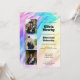 A vibrant rainbow‑marble background sets the stage for this bold, modern graduation party invitation, featuring three customisable front‑cover photos that let you showcase the graduate’s personality and proudest moments. All text fields are fully editable, making it easy to personalise names, degrees, dates, and venue details in your own style. The layout stays clean and uncluttered with no extra back text, while an integrated QR code on the reverse provides a fast, convenient RSVP option for guests. A bright, celebratory design that blends colour, energy, and customisation for a standout graduation announcement.