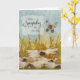Sympathy card with "messy" watercolor cone flowers, a butterfly, and a paint splattered, distressed vertical lined background of leaves and sky.