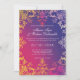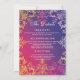 Introducing the Radiant Romance Wedding Invitation, a captivating design that combines vibrant hues with intricate elegance to set the stage for a wedding celebration like no other. The front of this invitation showcases a beautiful gradient background, transitioning from passionate pink to deep twilight purple, symbolising the journey from day to night and reflecting the depth and warmth of your love. The ornate gold floral motifs frame the invitation with a regal touch, highlighting the importance of this special moment.