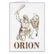 In Greek mythology, Orion was a powerful hunter. He was sometimes said to be the son of Poseidon. He drove the wild beasts out of the island of Chios and fell in love with Merope, daughter of the island's king. Disapproving of Orion, the king had him blinded, but his vision was restored by the rays of the rising sun. He later went to Crete to live and hunt with Artemis. Some legends hold that he was killed by Artemis or Apollo out of jealousy; another tells that he was fatally bitten by a scorpion. After his death the gods placed him in the sky as a constellation.