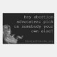 "Hey abortion advocates: pick on somebody your own size!" A strong, to-the-point way to convey your pro-life convictions. We recommend placing it on your laptop or on a frequently-used binder for maximum impact. Proceeds benefit Secular Pro-Life.