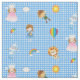 Wizard of Oz Characters on Blue and White Gingham Fabric. Patterns include Dorothy, Toto, Tin Man, Scarecrow, Cowardly Lion, Glinda the Good Witch, rainbow, cloud, balloon and umbrella.