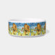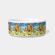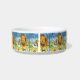 This is a heavy, durable bowl decorated with Tibbies of many colors, the perfect size for hungry/thirsty Tibs. The design is interesting and printing clear.